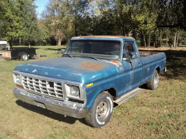 1978 Ford F-150 Custom. 302 V-8 2 WD. This started out as a father/son restoration project and it went haywire. Engine work was all done. Has a new carb and master cylinder/booster. Engine runs well. Transmission shifts but is sluggish. probably from sitting for some time. Has 4 Michelin 235 75/15 tires on her. They are new. less than 50 miles on them but have not been run in about 4 years. Chrome wheels will need cleaned up and polished. Body and interior are rough. The heater controls are missing. They were seized up so we removed then but never got new ones. The title on the truck is clear. That was the project killer. It took 5 years to get that cleaned up from being lost. but my son has since joined the Navy. so this project needs a new home. I also have the complete Ford shop manual set for the truck which goes with it. This is a ready made project for someone who has the time for it. Thanks for looking