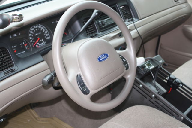 2001 Crown Vic Police Interceptor. The car has 156,000 well-maintained miles, ith a new engine with 62,000 on it. The car runs perfect. Transmission has been serviced and shifts like it should. I am the 3rd owner, nd I have owned other ones like this. However, his one is exceptionally clean, s seen in the photos. Have invested more into this car than I am asking for it. This car is ready to go cross country. And with proper maintenance, his car will last 100s of thousand miles. It is conceivable to get 300,000 miles out of these cars if they are properly maintained. The car has good heat, nd great A/C. Everything works on the car except the cruise control. The radio in the console is not hooked up, ut it is included, s is the push bar and the spotlight. The only flaw is on the dash where the 2-way mike was installed. Other than that, he interior is almost mint. Power seat on drivers side. Beige cloth seats, ront and back in excellent condition (they look grey in picture, know). Spare is brand new, nd the jack is included.