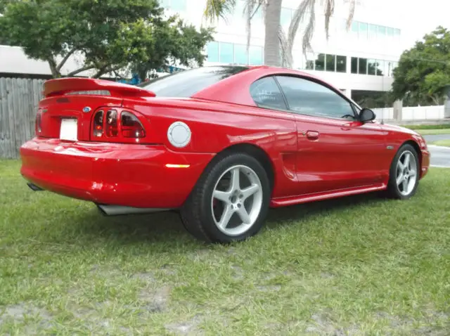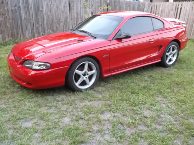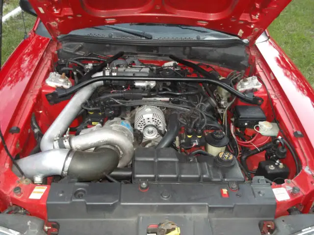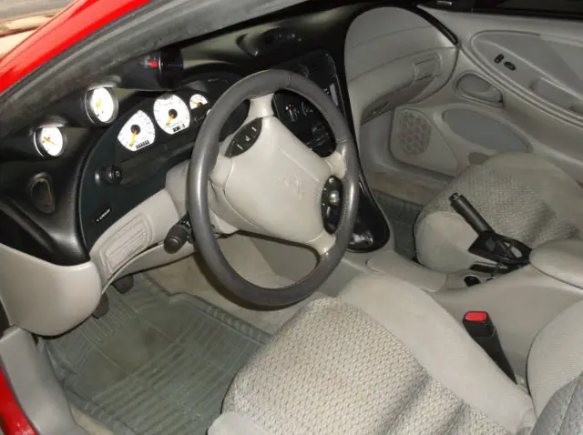 Rio red with gray cloth, Vortech Supercharger V-2, 2 lb. inject., ord P.I. heads,around 485 HP, .73 gear,X-pipe, ook of receipts,super clean, eight listed at 3029, ichelin Pilot Sport A/S 3 tires, oush 18" wheels,awesome car. Roush does not list production numbers for this year but have seen very few and only a couple with the cloth interior.Save your trade and low-ball offers.