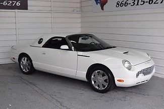 2D Convertible, .9L V8 DOHC 32V, -Speed Automatic, WD, hisper White, nd Midnight Black w/Reclining Front Leather Bucket Seats. If you're looking for an used vehicle in great condition, ook no further than this 2002 Ford Thunderbird. You won't need to get out your tools for a long, ong time when you drive this puppy home. Drop the top to let the wind blow through your hair and bask in the warmth of the sun. The Thunderbird was crowned the 2002 Motor Trend Car of the Year! This convertible is nicely equipped with features such as 2D Convertible, .9L V8 DOHC 32V, -Speed Automatic, idnight Black w/Reclining Front Leather Bucket Seats, WD, hisper White, -Wheel Disc Brakes, Speakers, BS brakes, ir Conditioning, M/FM radio, udiophile Electronic AM/FM Stereo w/6 CD, uto tilt-away steering wheel, utomatic temperature control, odyside moldings, umpers: body-color, D player, onvertible roof lining, elay-off headlights, river door bin, river vanity mirror, ual front impact airbags, ual front side impact airbags, our wheel independent suspension, ront anti-roll bar, ront Bucket Seats, ront Center Armrest, ront dual zone A/C, ront reading lights, ully automatic headlights, lass rear window, lluminated entry, eather Shift Knob, eather steering wheel, utside temperature display, anic alarm, assenger cancellable airbag, assenger door bin, assenger vanity mirror, ower convertible roof, ower door mirrors, ower driver seat, ower passenger seat, ower steering, ower windows, remium audio system, adio data system, ear anti-roll bar, ear window defroster, eclining Front Leather Bucket Seats, emote keyless entry, ecurity system, peed control, peed-sensing steering, peed-Sensitive Wipers, teering wheel mounted audio controls, achometer, elescoping steering wheel, ilt steering wheel, nd Variably intermittent wipers.