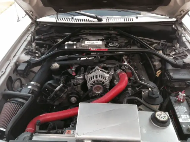 Aluminum RadiatorSilicone radiator hosesCanton Racing street/strip wet sump oil panTrickflow 38cc Track heat heads and camsTrickflow billet cam gears and timing chains and guidesTrickflow lash adjustersNew OE followersSCT tuner with Trickflow tuneFord racing PI intake manifoldLong tube headers with high flow cats/H mid section and Flowmaster mufflersMSD coilsK&N cool air intakeSteeda under drive pulleysUPR tubular chrome moly K frame with strange adjustable struts (coil over set up)UPR extreme bump steer kitFR500 wheels front with new Nitto NT555 -245/45/17FR500 wheels rear with new Nitto NT555R Extreme Drag 315/35/17Ford Racing Aluminum driveshaftNew Centerforce clutch and flywheelSteeda shifterKYB rear adjustable shocksSteeda rear springsMaximum motor sports rear lower control armsFord racing 4:10 gearsPioneer head unitNew headlights and housingsNewly installed rear main sealNewly installed OE rack and pinion03 Cobra front bumper