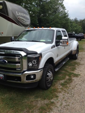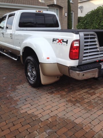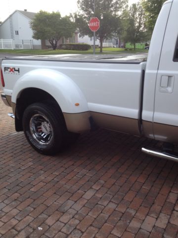2011 dually f-350 lariat 6.7 litres Fx4,diesel white and gold interior tan leather sea, électric seat,heated and cool,navigation,bluthooth, unroof, ync, oto Metal Wheel Michelin tire are in very good condition,cold air intake AFE,stering damper PRO-COMP, ed liner,tonneau cover,6 winter tires with omg wheels,rear air suspension,vent-shade on each side and in front of the hood,husky carpet,seat covert in néoprene,remote start and alarme with extra keys,Recon light,this vehicule have no skratch and is not a vintage vehicule, ever boots or put a cheap in it,i bought this pick-up in january 2011 from Texas Auto, m the second driver of this truck run like new, lso avalable a itch (AIR SAFE)for $3900.00 i sold my pick-up because i have sold my 38 ft feefth-wheel and i dont need this anymore.Always repair to my ford dealer DUPOND FORD Québec in Canada