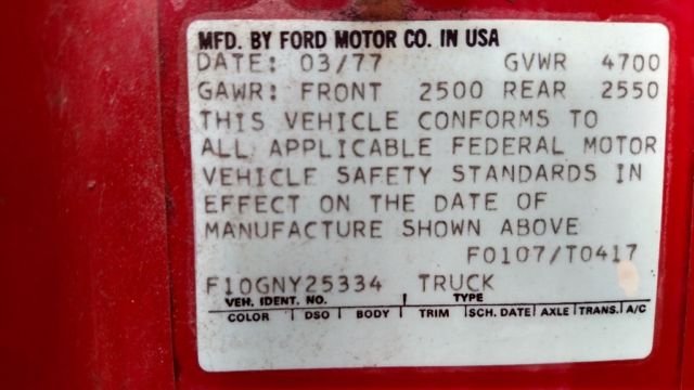 Year: 1977Make: FordModel, rim: F-100 CustomVIN: F10GNY25334