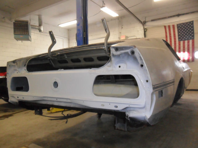 I have a very clean mustang body...I believe the paint is original......clear title in my name...VIN tag in place...I just had the radiator support and forward aprons replaced at a collision shop.. they also painted the "dog house" and they also installed new full length floor pans and a new trunk floor with drop downs and a new taillight panel... has a new hood and a good used trunk lid...decent doors with the glass and tracks and regulators they are a little rusty on the bottom....and have good fenders...also have the dash panel with the correct VIN tag and a tilt steering column.....