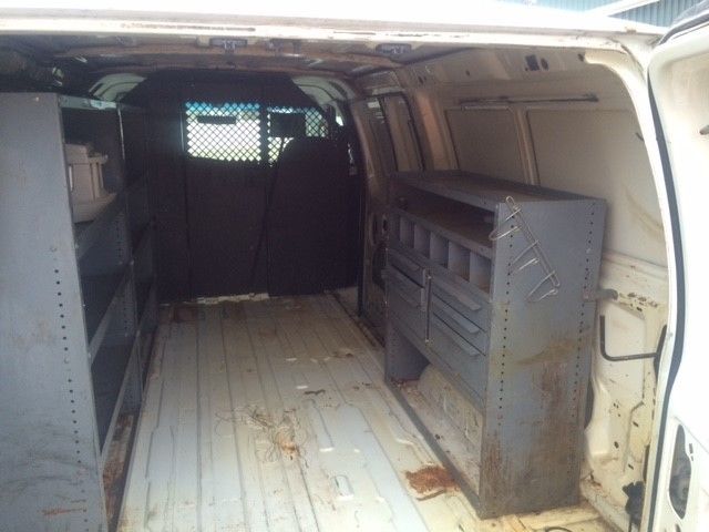 2001 FORD E350 EXTENDED CARGO WORK VAN 10 CYLINDER BULKHEAD CARGO BINS LOW MILES
