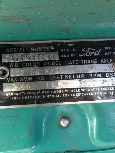 Up for sale is a gorgeous 1961 Ford F250 Unibody pickup truck with an awesome patina. Ithas a ford 223 inline 6 that isn't currently running. It turns over when you turn the key but it has a badvoltage regulator that's keeping it from gettingenough power to start. Easy fix.Almost perfect interior. This truck is from Nebraska and has almost zero rust. The only spots of rustare in the bed and there's a tiny hole in the door step. Tailgate is not attatched but comes with the truck. Message me with any questions. IF YOU DONT WANT THE TRUCK OR DONT HAVE THE MONEY TO PAY, ONT BID. IM SICK OF DEALING WITH PEOPLE WHO DON'T PAY.