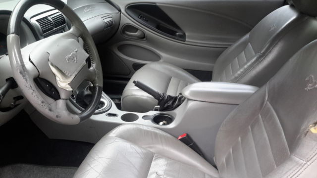 This is a high mileage vehicle from 198k-200k. The vehicle runs but rough. There is a problem with the third cylinder on the motor. There is a scratch on the drivers side real panel. The front bumber has slight damage. Both airbags have been deployed with no damage to the frame. This vehicle has an after market short shifter, ir intake by BBK, lso includes two brand new Flowmaster exhaust still boxed. The tires are 4 month old..Handheld tuner with 3 tunes, erformance, treet, nd racing tune. This can also be an great parts car for any mustang guys or gals.. THIS IS AN ASIS VEHICLE