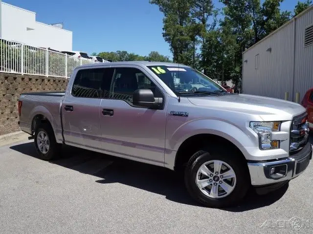 Mark Jacobson Toyota of Durham offers 3 big showrooms of new Toyota and used cars near Raleigh. All used cars include a Money Back Guarantee and most include a Lifetime Limited Powertrain Warranty! This Silver 2016 Ford F-150 XLT might be just the supercrew for you. It comes with a 3.5 liter 6 Cylinder engine. Don't fret, his vehicle only had one previous owner. With an unbeatable 5-star crash test rating, his supercrew puts safety first. It has a silver exterior and a black interior. Interested? Call today to take this vehicle for a spin! We are conveniently located in south Durham just minutes north of I-40 at Exit 270 (15-501). Take a short drive and enjoy our huge selection, ow internet pricing, nd outstanding customer service! Please present this online advertisement at time of purchase to receive promotional price shown.