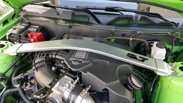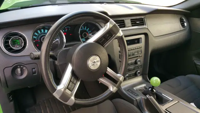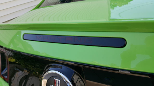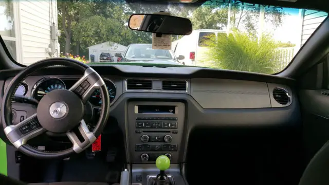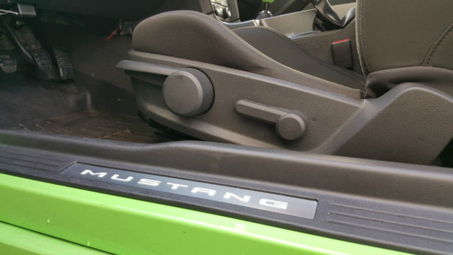 Aesthetics - green Illuminated door sill plates ($200), ghig shift ball knob ($60), Recaro racing seats, green Aeroforce interceptor guages w/boost line ($300), Roush recessed vent pod ($40) Weathertech lazer cut precision floor liners ($140), matte shift boot retainer ($30), smoked quarter markers rear bumper and third bake light tint ($40, matte quarter window blackouts ($40), matte hash marks ($30), mustang matte rocker stripes, painted wing, license plate relocation bracket, and under hood dress up.