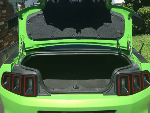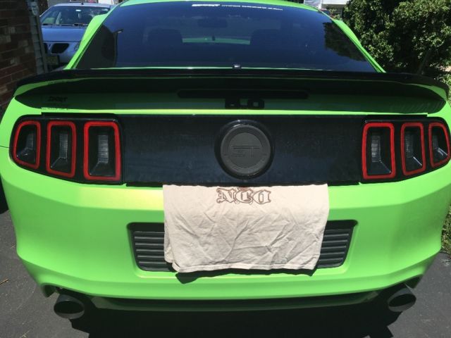 You are viewing a 2013 Gotta have it green Ford Mustang GT 5.0 L V8. This car has 19,988 miles, wow less than 20,000 miles. This is a muscle car lovers dream with 420 + HP and tasteful modifications to include: an air raid CAI, throttle body spacer, Pypes cat-back exhaust (black), Monster decals symmetrical on both rear side quarter panels, Roush spoiler, Roush chin bumper, 1.5 inch lowering springs, MGP SVT brake caliper covers (yellow), HD fog lights (blue in color), Elanor style window louvers (green), Shelby Rims (black) and Nitto Tires 255/front, 295/rear. The car has a custom Bama Tune. This gorgeous one-of-a-kind Gotta Have It Green Mustang will surely impress and turn heads. Only serious inquires/buyers only. 27,000 OBO, no low ball offers. Vehicle comes with an extended warranty 7 years/100,000 miles which extends past 114,000 miles seeing as the factory warranty ended last December and the extended warranty is now in effect. I am the 2nd Owner of the vehicle and the vehicle is in excellent condition.