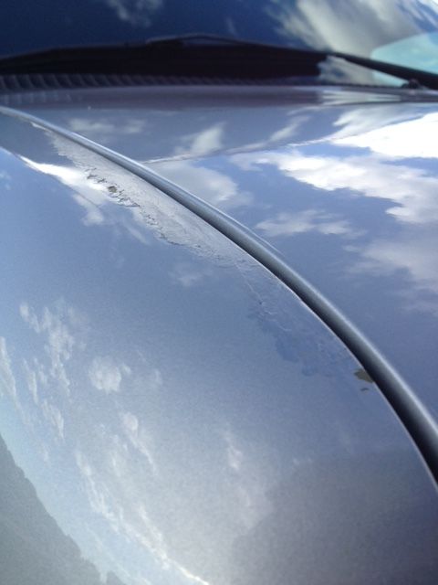 Dent on rear driver’s side (picture included). Some cosmetic paint-peel on edge of hood (picture included)and rain gutters. I use a touch up pen whenever needed. Small chip in windshield recently repaired. 4WD low range sticks a little, but high range works 100%. Low range issue could be from lack of use.