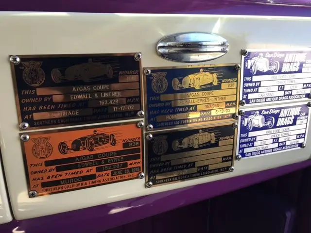 Up for auction is a very special hot rod. Chuck Edwall's 1938 Ford five window coupe, a real deal hot rod in every sense. This is a home built, street driven car that was run at El Mirage, Muroc and Bonneville. It ran a best of 157.9 at Bonneville and was driven from San Diego to the salt. Chuck made this trip several times. The car also ran a very impressive 162.4 at El Mirage dry lake, the car was a regular competitor there for several years. Chuck also drag raced the car, in the quarter mile it has run a best time of 11.22 and a top speed of 129.