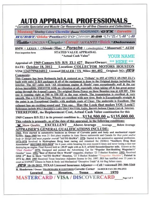 I do not Build these Camaros to get Rich...Clearly at the Price that I charge... Which is well Below this Appraisal...I will not get Rich.