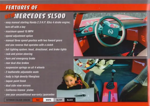 Mechanics: Frame in jig-welded tubular steel; wheel rims in pressed steel plate, mbodying hub and ball bearing; hub covers in ABS; inflatable heavy duty tires type with air tube; full suspensions, ear disc brake, lutch. automatic centrifugal, teering. rack and pinion steering. Gearbox: direct, orward and reverse.