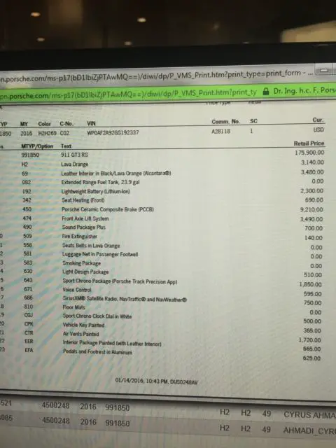 This car is a 2016 GT3 RS is a fully loaded, eramic brakes, ift, miles. The exterior color is Lava Orange with a black interior.