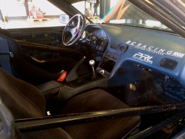 The interior is nothing special. Cage. Gutted. Worn Sparco race seat. Dash doesn't work, all the gauges such as RPM, Engine Temp, and speed is run through the AEM EMS system. I never cared about the redline with this engine setup so I didn't try to get the gauge cluster to work the past 6 years i've used this car shell.