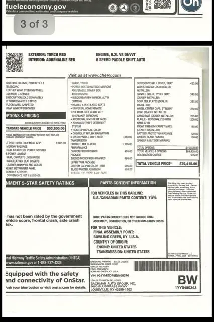 Red 3LT interior (Napa leather, memory package, heated/cooled seats, net and luggage shade, auto dimming mirrors, navigation, red stitching, upgraded stereo, upgraded theft system, etc.)