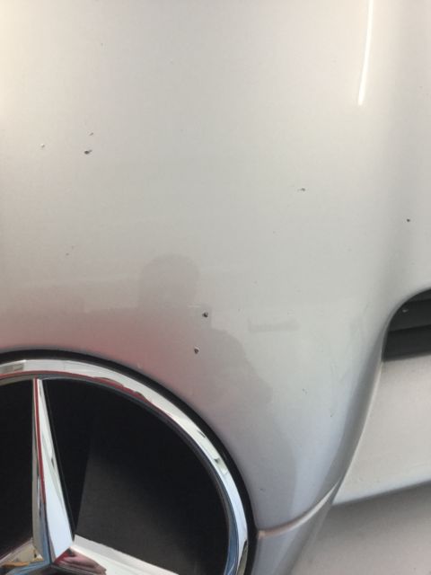 Only blemishes on this car are the 3 listed below.The hood has some rock chips.The rims have some minor flaking at the edgesThe rear tires are newer than the front tires.