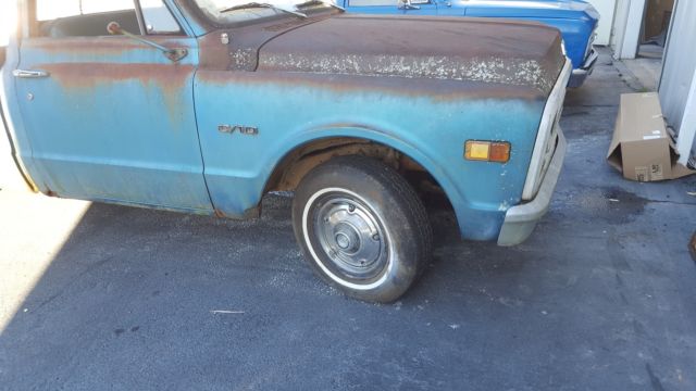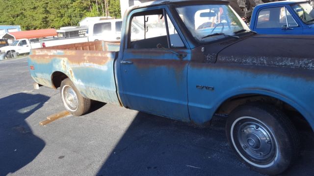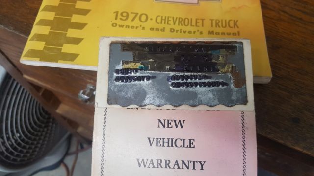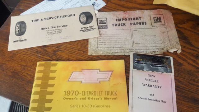 1970 c10 long beda one owner trucktruly farm freshthe truck is showing less than 30000 milesthe owner says it was used on the farm and to the feed store so the mileage might be accurate.new carbnew master cylinder and flex brake linesall orignal other than the carb and linesstill has the jacks and even the factory radio307 3 speed on the columruns very quiet and doesnt smoketrue patina!! no faux stuff here.the floor boards are solid..it does need cab corners and rockers..the new rockers were with the truck when i got it.the body is really good for the exception of one bedside.it will need to be replaced. drivers sideit was bought new in winder ga where its been since 1970i have the manual and warranty card.. complete with the PROTECTOR PLATE.