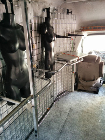 The Showmobile is the perfect solution for the salesman on the go. Custom built by Dodgen Mobile Technologies. the 24" Born Free vehicle has been outfitted as a mobile store and showroom. The rear of the vehicle contains two sets of double hung bars. perfect for displaying clothing or other wares. There are also several sets of metal racks that can be used for hanging shelves or caddies. There is a small couch and table for potential customers. The rear of the vehicle has floor-to-ceiling carpeting. In the cab. there are two plush flex steel captain chairs. The rear of the vehicle also has lights. and an AC power outlet can easily be added. An auxiliary battery powers the electricity in the rear of the vehicle. The Showmobile has been well maintained! Since its creation. it has been cared for by a single owner - me. It has been serviced by a RV technician as well as a mechanic. and was recently outfitted with six brand-new tires. The vehicle is located in Fort Lee. New Jersey - the buyer will need to come and pick it up. Accepting cash or certified check.