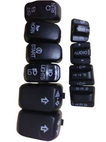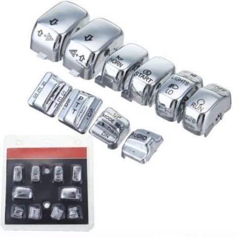Chrome Hand Control Switch Housing Buttons Caps For Harley FLHT FLHTC FLHX DYNAFeatures:Aftermarket 100% NewThis is a set of genuine harley davidson hand controls switch housing buttons for touring models. A good replaced set for your damaged or non-working originalEasy to use. but if you don’t know how to install. professional installation is highly recommended. Color: ChromeMaterial: High Quality ABS PlasticFitment :1996-2013 later FLHT. FLHTC. FLHX. FLTRX and FLHXXX models equipped with cruise controlHarley Davidson. DYNA. OFTAIL. Touring Series before 2012Package Type Includes:1x START switch cap1x LEFT switch cap1x RIGHT switch cap1x RES SET switch cap1x PTT switch cap1x RUN OFF switch cap1x HORN switch cap1x LIGHTS switch cap1x AUDIO switch cap1x MODE SEL switch capShipping and Handling :Only ship to address provided by eBay. Please make sure your address on eBay matches the address you would like us to ship to. It usually takes approximately 7-20 days to receive order. But actual delivery time depends on customs process and local postal service. if you are in Italy. Spain. South America. and Mid-East. it will take over 30 days or even more. Buyer is responsible for any tax and/or duty charged by their countries. Feedback:Our goal is to provide our customers 100% customer satisfaction. Please email us before leaving any 1 or 2 ratings. negative feedback or open any dispute. We understand the concerns and frustrations you might have and will do our endeavor to resolve the issues. Please give us the opportunity to resolve any problem. Payment:We accept PAYPAL payment method at here.