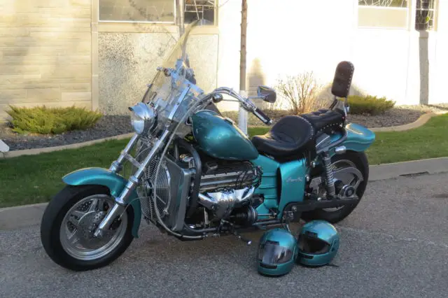 1994 BOSS HOSS CUSTOM MOTORCYCLECUSTOM BUILT WITH NEW CRATE CHEVY ZZ3 350 C. I. (5. 7 LITER) V8 MOTOR (Note: This was built in 1994 with a New crate motor - not built with a used motor)* 345 HP - 387 FT. TORQUE * 0-50 MPH IN 1. 5 SECONDS * 50-100 MPH IN 4. 0 SECONDS* Edelbrock 4 Barrel. Headers with custom chrome pipesCLUTCH BIKE - AUTOMATIC TRANSMISSIONVERY LOW MILES: 6. 00* No leaks. no dripsDETAILSHARLEY WIDE GLIDE 29" TUBE FRONT ENDSEAT HEIGHT: 30 Inches TOURING WINDSHIELDLOTS OF CHROME ADDED FROM FACTORY SUPER CLEAN BIKE - EXCELLENT CONDITION * Never crashed - Never laid down STARTS. RUNS AND RIDES PERFECT* Color is Teal. but has a nice metal flake within. takes on different tones in different light - soft blue green to warmer teal tones* Bought this from the original owner's family settling his estate - Very well cared for * Comes with 2 paint matching helmets* SOLD AS ISNEGATIVES* Windshield has minor stress cracking around a couple of the mounting bolts - Still very stable* Speedometer was twitching so a new one was installed. which now shows 1. 00 MilesI have the original the one to verify the accurate mileage of 6. 00 (Total)* There is a scratch (paint chip) on back of front fender facing radiator fan QUESTIONS: * Please ask if you have questions* More or specific pictures upon request* Feel free to Call or Text (612) 735-3454 - Please before 10:30 p. m. Central TimeThanks. DavePAYMENT & SHIPPING* DEPOSIT: $500 PAY PAL DEPOSIT WITHIN 48 HOURS* BALANCE OF PAYMENT: CASH / CASHIERS CHECK * RIDE IT HOME CONFIDENTLY. TRAILER IT. OR WE WILL ASSIST YOUR SHIPPER