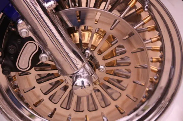 80 spoke radial laced Dayton wire wheels w/ 24 karat gold plated hub & nipple