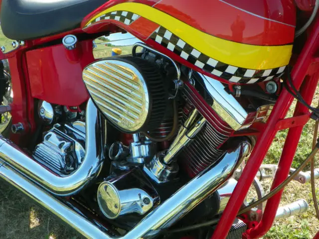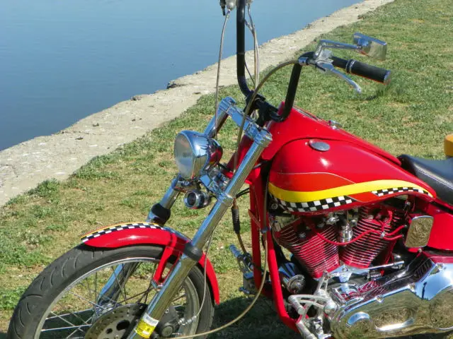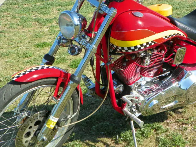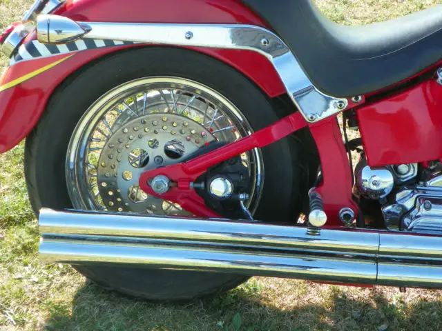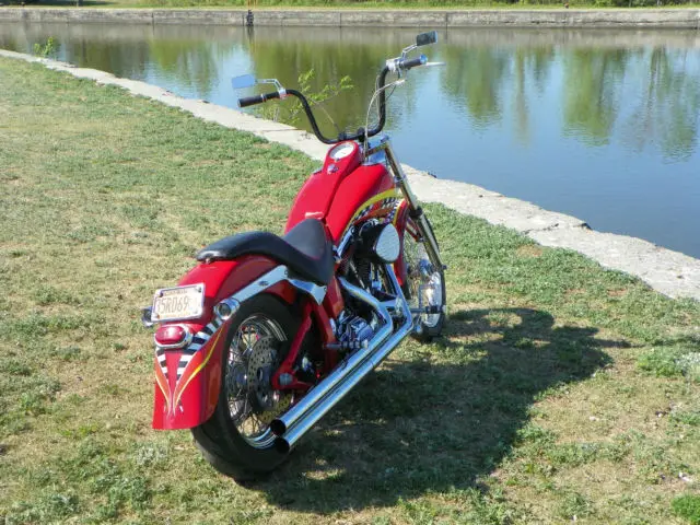 2000 custom softail, hrome front end with chrome lower legs, id size ape hangers, ustom paint, ance & hines exhaust, B billet controls, owder coated motor with polished fins, ew clutch & belt, ewer tires, uns excellent, omes with extra lepera solo seat & drag bars with built in risers NY DMV inspected clear custom title, low miles no reserve.