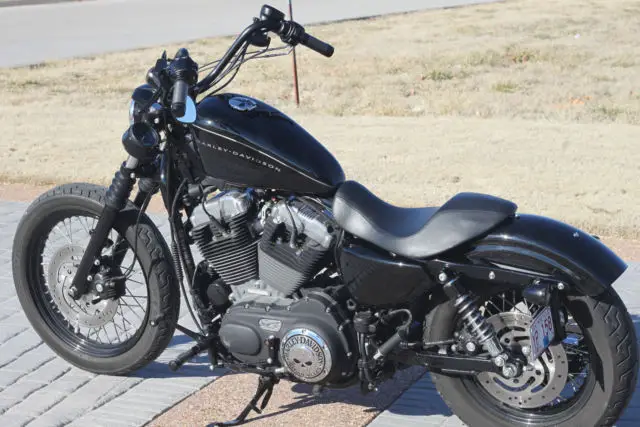 This is one of the coolest Nightsters ever. and has VERY low miles! Lots of extras including min-apes. smoked rear bullet signals and front signals. skull motif Harley covers and gas cap. forward controls. and diamond grips. Some of the modifications were done by the previous owner. and some I did myself. I removed the front fender for that "bobber" style look. but it and the original bars and controls are offered with the bike. Two years ago I relocated the speedo with a Joker Machine mount on the left side for a cool. sleeker look. I also added a Joker old-school breather to replace the original. The bike also has a Power Commander and Vance & Hines chrome pipes as add ons. runs like a scalded dog!!! This bike will literally scoot out from under you when you get on it if you aren't careful! My kids are playing so many sports now and with my work travel I just don't have time for it any more. I won't ship the bike. but I will meet someone within 100 miles if you need me to deliver it. Happy bidding!!!